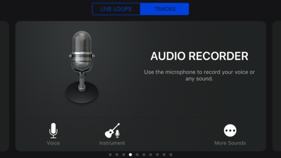- Bước 2: Khi hoàn tất, bạn bấm vào biểu tượng dấu cộng ở góc trên bên phải và chọn Create new song (tạo bài hát mới), vuốt từ phải sang trái và tìm đến mục Audio Recorder, sau đó chuyển sang thẻ Tracks.