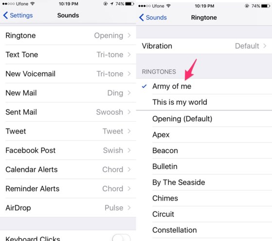 Cuối cùng, bạn hãy truy cập vào Settings (cài đặt) > Sounds (âm thanh) > Ringtone (nhạc chuông) và tìm đến bài hát vừa tạo khi nãy.
