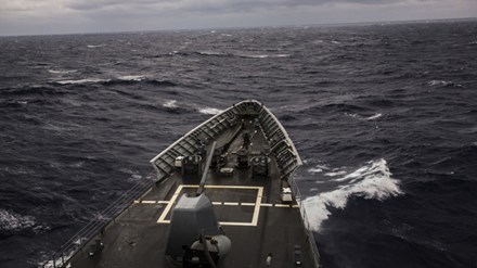 Tên hành trình tên lửa dẫn đường USS Chancellorsville trên eo biển Luzon ảnh: New York Times