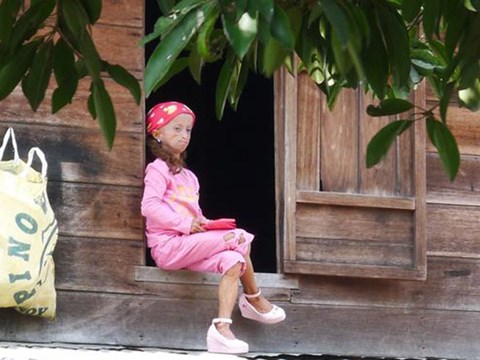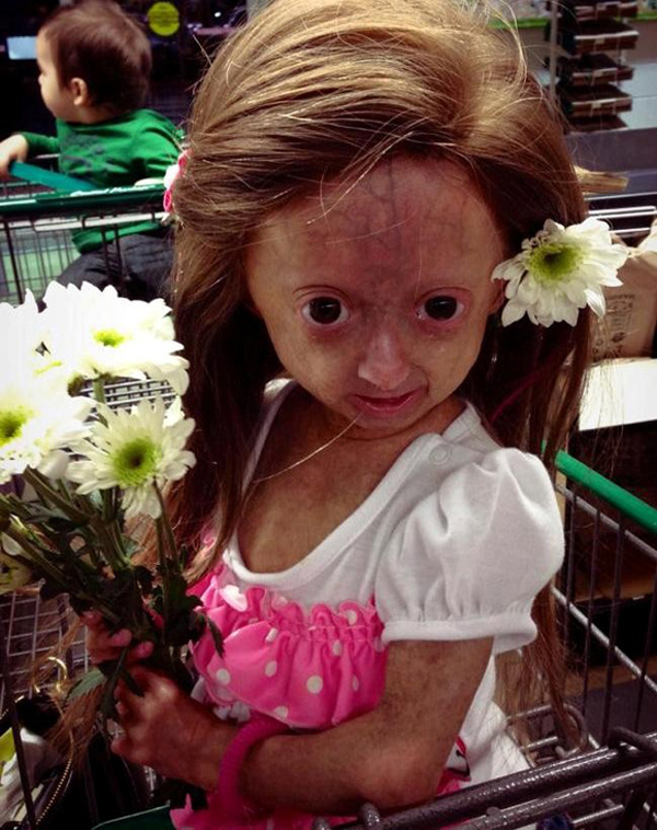 Bé gái là một người kém may mắn khi mắc phải một căn bệnh mà rất ít người mắc phải.Tuy nhiên ý chí và nghị lực sống phi thường của em thật khiến nhiều người khâm phục.Em không cảm thấy tự ti vì mang diện mạo xấu xí và luôn lạc quan yêu đời.