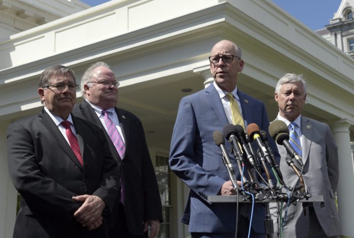 Từ trái, Dân Biểu Michael Burgress, Dân Biểu Billy Long, Dân Biểu Greg Walden, và Dân Biểu Fred Upton, tại cuộc họp báo, sau khi gặp tổng thống.