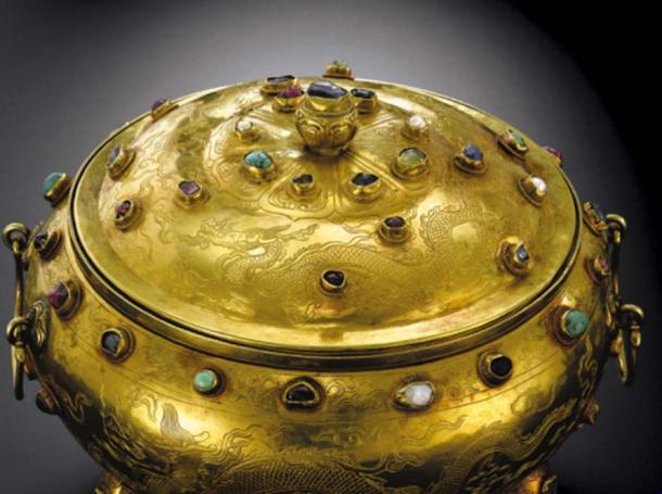 Hiện trên thế giới chỉ còn 8 chiếc âu cùng loại. Qua giám định cổ vật này có niên đại từ thời vua Tuyên Đức (trị vì trong khoảng 1399-1435). Đây cũng là thời gian mà kỹ nghệ, mỹ thuật của Trung Quốc đạt tới đỉnh cao. Chiếc âu này đúc từ vàng 18K, chạm trổ rồng và ngọc trai cùng nhiều loại đá quý như hồng ngọc. Nó về tay một người chủ phương Tây tại phiên đấu giá ở Hong Kong.