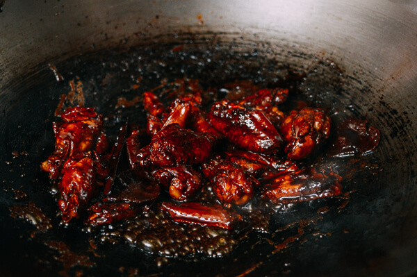 - Đun tới khi sôi lên thì hạ lửa và đậy vung lại, om trong 12-15 phút tới khi sốt sánh lại, đảo đều để sốt bám quanh thịt gà.