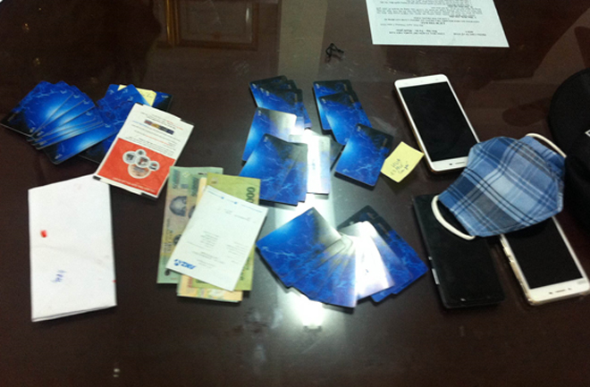Kiểm tra hành chính các phòng thuê của 3 đối tượng, lực lượng công an còn phát hiện nhiều đồ vật, tài liệu nghi vấn là thiết bị ghi đọc thông tin thẻ, máy tính, thẻ nhựa dạng ATM..., đồng thời thu giữ 76,5 triệu đồng là tang vật của vụ án...