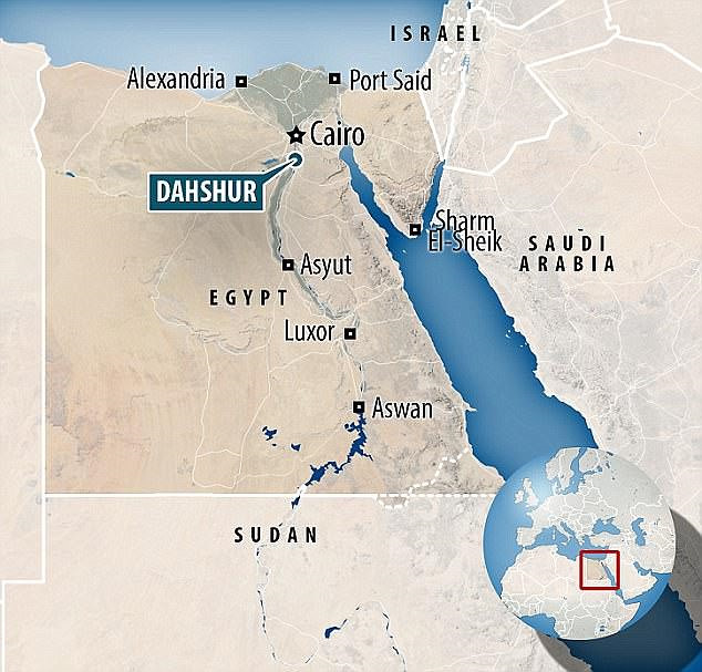 Vị trí lăng mộ hoàng gia Dahshur ở Ai Cập. Ảnh: Daily Mail.