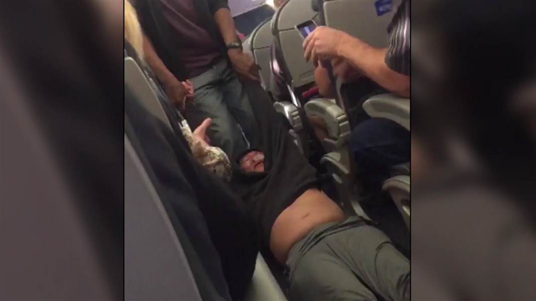Hình ảnh cắt ra từ đoạn phim quay cảnh bác sỹ Dao bị kéo xuống khỏi máy bay của United ngày 9/4