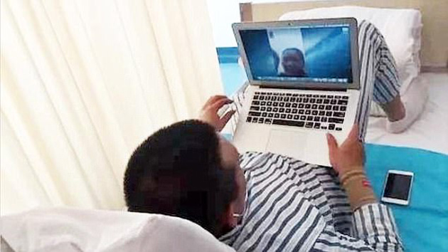 Anh Fu Gui nói chuyện qua mạng với bố mẹ đẻ.