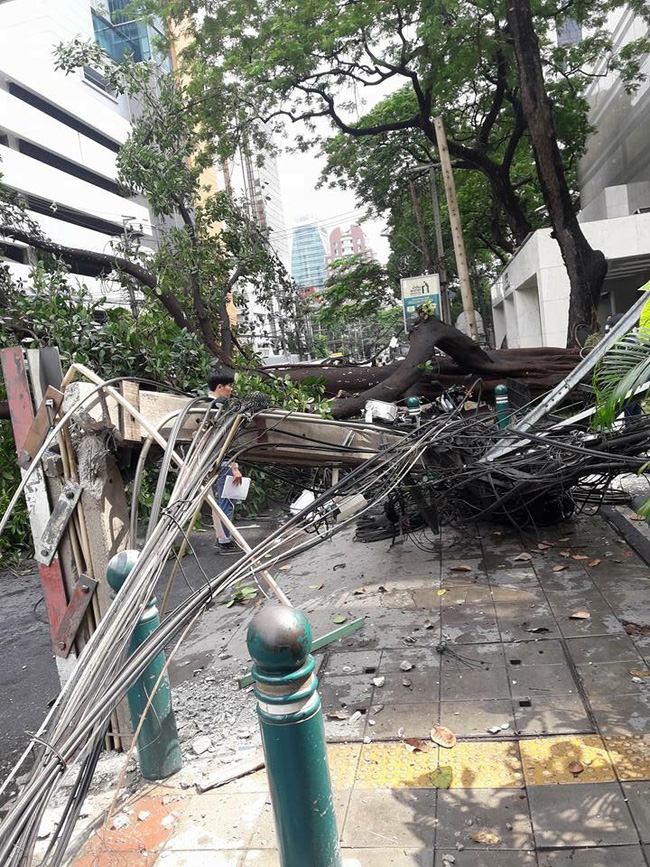 Về phía cơ quan điện lực Bangkok cho biết: "việc cây cổ thụ bất ngờ bật gốc và đổ xuống đã kéo theo cả 6 cây cột điện trên đoạn đường này đổ theo. Tuy nhiên, lại không hề xảy ra tình trạng mất điện vì điện ở khu vực này được mắc theo hệ thống ngầm".