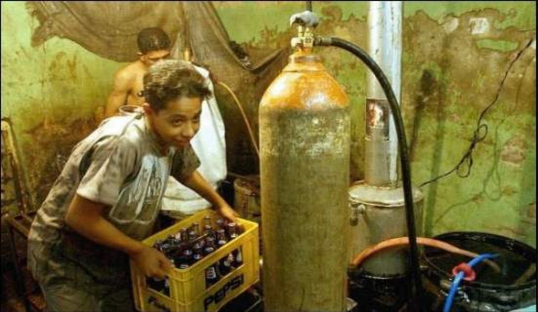 2. Trẻ em được thuê để đổ đồ uống còn thừa ra và làm sạch chai