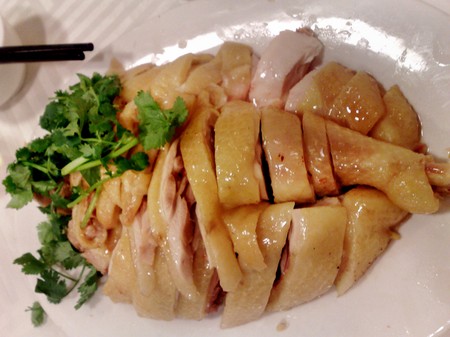 - Sau khi luộc xong gà nên vớt ra nước sôi để nguội để da gà giòn. Muốn gà có màu đẹp thì pha bột nghệ với nước mỡ gà, phết lên con gà là đẹp ngay.