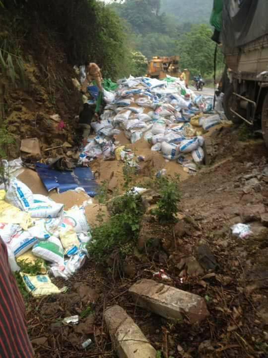 Vụ tai nạn xảy ra tại tỉnh Hòa Bình. Chiếc xe ô tô chở cám đã đâm vào vách núi khiến 2 người chết. Điều đáng nói là người dân ở đây đã lao đến hôi cám.