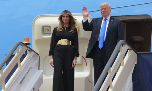 Chuyên cơ chở Tổng thống Mỹ Donald Trump và Đệ nhất phu nhân Melania đáp xuống sân bay quốc tế Vua Khalid ở thủ đô Riyadh, Arab Saudi, vào 9h45 ngày 20/5 (giờ địa phương). Thảm đỏ đă trải sẵn, đội danh dự trong trang phục truyền thống màu đỏ và trắng đón tiếp lănh đạo nước Mỹ, theo USA Today.