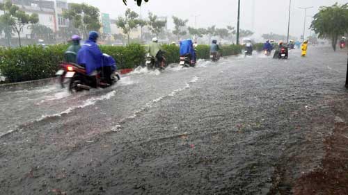 Thành phố Hồ Chí Minh sau mỗi cơn mưa như trút nước là phố cũng như sông. "Sóng" dâng cao và người dân đi lại rất khó khăn. Nhiều nơi ngập sâu và mỗi khi ô tô chạy qua là tạo nên những cơn "sóng" cao 2m là bình thường.