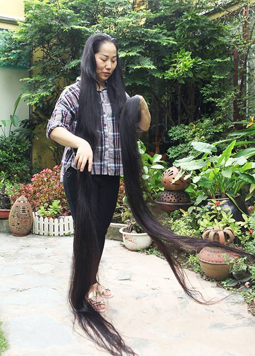 Tóc dài luôn là điều mong ước của người phụ nữ. Chị Hoàng Thị Lan đang có một mái tóc rất đặc biệt. Tóc của chị dài tới 2,4m và có mùi hương rất nhẹ nhàng.