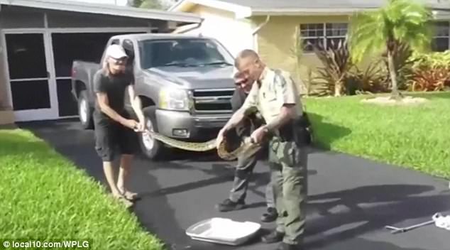 Các chuyên gia có mặt tại nhà của ông Liscinsky để xử lý con trăn