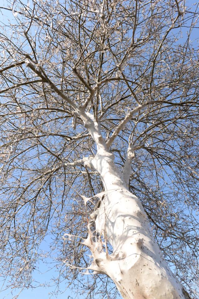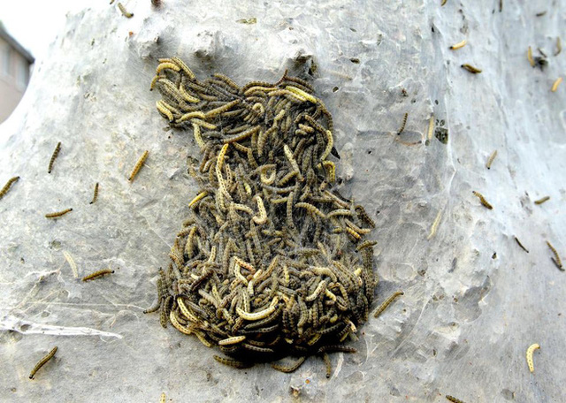 Chỉ nhìn thấy một con sâu róm cũng đủ khiến nhiều người sởn da gà vậy mà ở đây hàng ngàn con sâu bướm cùng những lớp màng trắng phủ kín khu vườn, nhưng cái cây và thậm chí là cả xe ô tô.