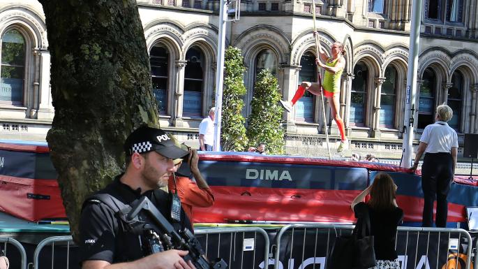 Cảnh sát Anh tuần tra tại trung tâm thành phố Manchester.