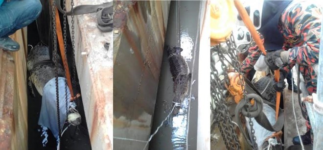 Lãnh đạo đội cứu hỏa và cứu nạn Sungai Pinang Zaidi Ahtan cho biết phải mất 5 tiếng đồng hồ, các nhân viên cứu nạn cùng với công nhân Công ty KEV mới đưa được con vật khổng lồ ra khỏi đoạn kênh sâu đến 9 mét nhưng tương đối chật hẹp. Họ phải sử dụng phương tiện đặc biệt mới nâng được con cá sấu lên.