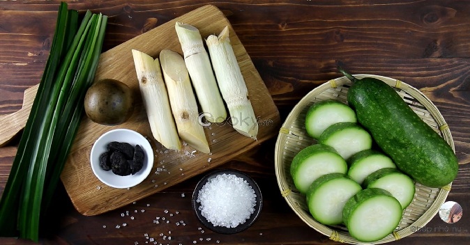 Mía lau chẻ từng thanh nhỏ đặt dưới đáy nồi, rồi tới bí đao cắt khoanh để nguyên vỏ và ruột, thục địa cắt miếng, la hán quả bẻ ra, sau đó cho nước lạnh vào nấu.