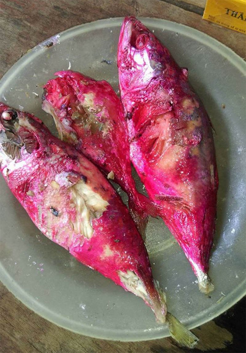 Tuy nhiên, khi để cá qua một đêm thì toàn bộ số cá đã kho chuyển sang màu đỏ khiến gia đình hoang mang, lo lắng. Gia đình chị Phương đã trình báo cơ quan chức năng xuống kiểm tra.