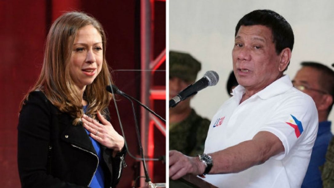 Ông Duterte nhắc tới Monica Lewinsky, một nữ thực tập sinh Nhà Trắng, liên quan đến bê bối tình ái của cựu tổng thống Bill Clinton sau khi Chelsea Clinton viết trên mạng xã hội Twitter rằng ông Duterte "là một kẻ côn đồ không tôn trọng nhân quyền".