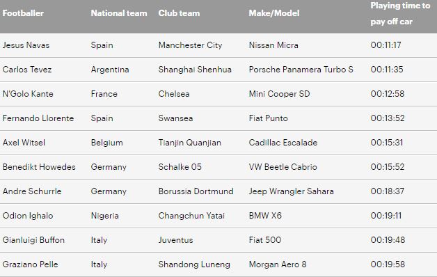 Trang Carspring mới đây đă làm một thống kê cho thấy độ giàu có của các cầu thủ lớn đến thế nào. Những chiếc xe họ đi hàng ngày chỉ cần làm trong ít giờ, thậm chí là trong chục phút đă đủ tiền mua xe.