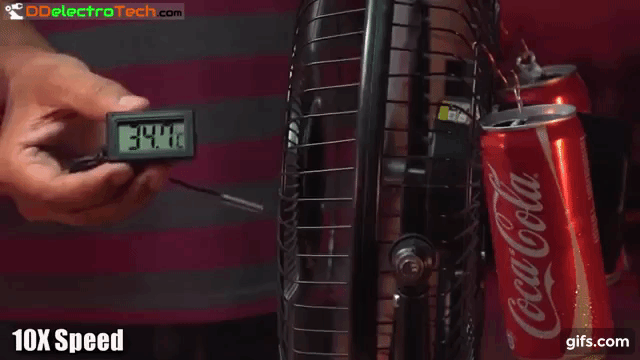 Nhiệt độ giảm nhanh chóng mặt. Chỉ mới bật quạt có mấy giây mà nhiệt độ đã xuống gần 33 độ rồi. Nếu quạt chạy lâu hơn nữa thì có lẽ phương pháp này có thể giảm cả chục độ đấy.