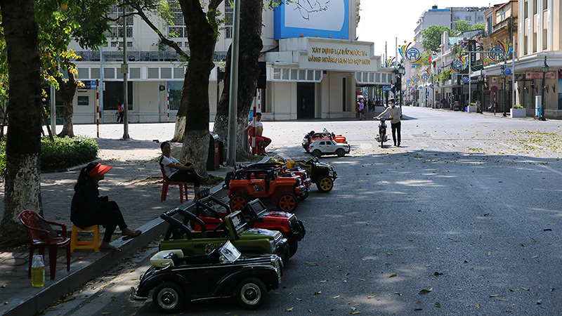 Thời tiết ở Hà Nội bắt đầu chào hè. Những cơn nóng oi ả khiến không ai muốn ra khỏi nhà trong thời gian này. Khu vực phố đi bộ cuối tuần cũng vắng khách và trông còn vắng hơn cả ngày mùng 1 Tết.