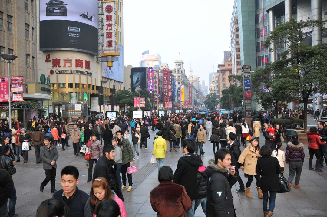 Một con đường đông đúc tại Thượng Hải, Trung Quốc.