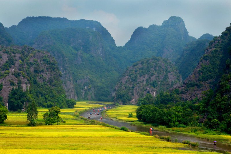 Tam Cốc - Bích Động được ví như Vịnh Hạ Long trên cạn với hệ thống hang động, núi đá vôi, những cánh đồng lúa nước tuyệt đẹp.