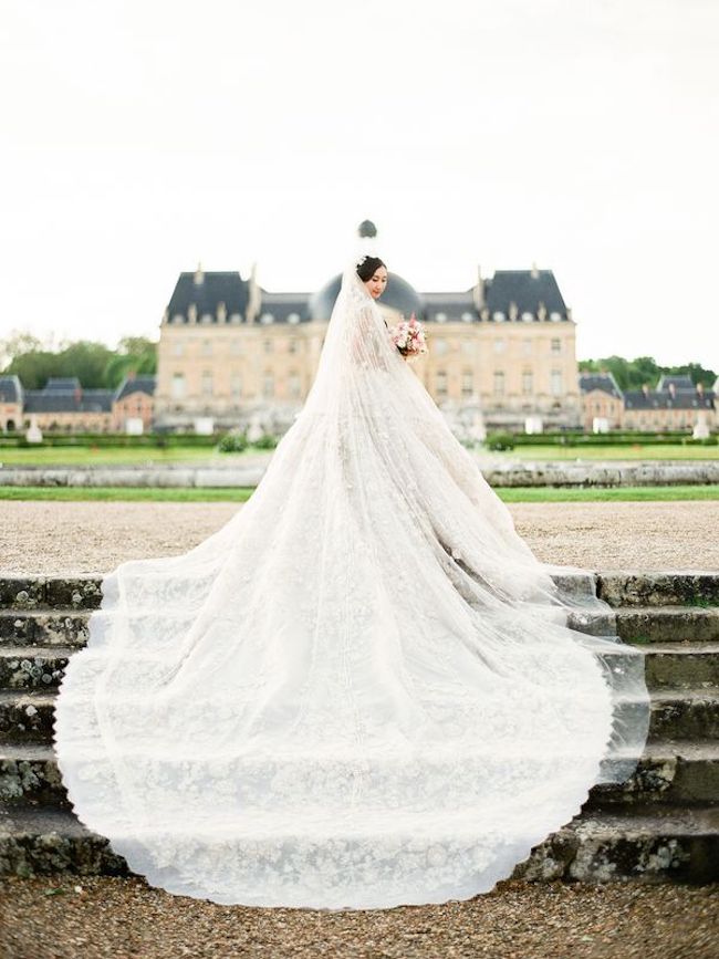 Một cô dâu từ châu Á trước lâu đài Pháp. Người Trung Quốc thường săm soi các bữa tiệc đắt tiền nên những cặp đôi từ nước này chọn địa điểm khác để tổ chức đám cưới