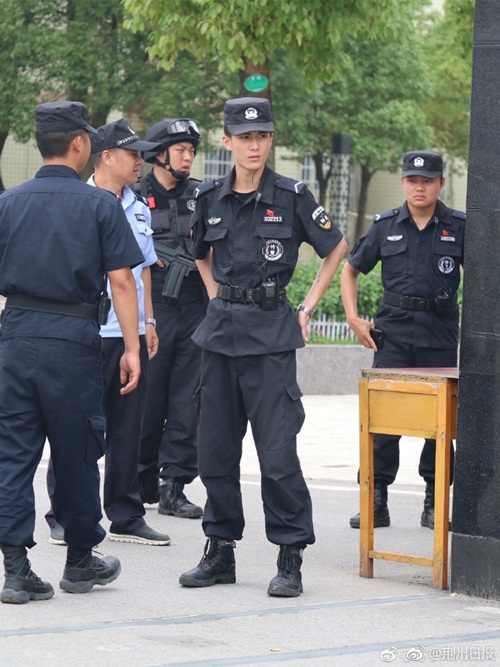Đợt thi tuyển sinh vào đại học vừa qua, cộng đồng mạng Trung Quốc xôn xao trước loạt ảnh chụp anh cảnh sát cơ động điển trai làm nhiệm vụ trước cổng trường thi. Những bức ảnh được chụp tại điểm thi là một trường trung học ở huyện Giang Lăng, tỉnh Hồ Bắc.