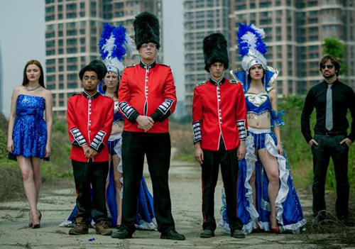 Những người nước ngoài được thuê biểu diễn trong một sự kiện chào bán bất động sản. Ảnh: Phim tài liệu "Dream Empire"