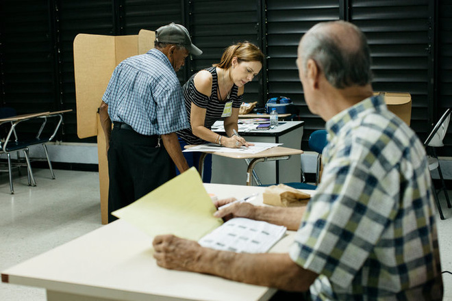Người Puerto Rico xếp hàng chờ bỏ phiếu. Ảnh: NYTimes