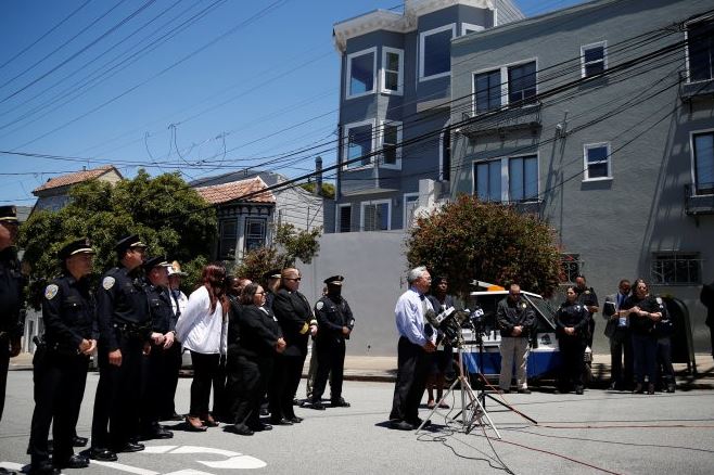 Thị trưởng thành phố San Francisco, ông Ed Lee, họp báo sau vụ Xả súng ở thành phố của mìnnh ngày 14-6 - Ảnh: Reuters