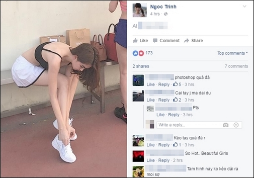 Ngọc Trinh cũng thường xuyên bị "tố" trên facebook là lạm dụng phần mềm chỉnh sửa ảnh quá nhiều.