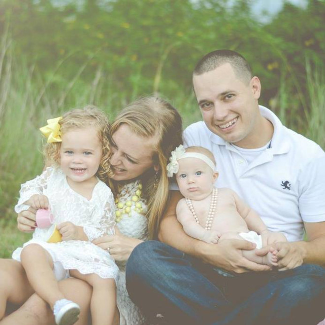 Sophia bên cạnh cha, mẹ và em gái của mình.