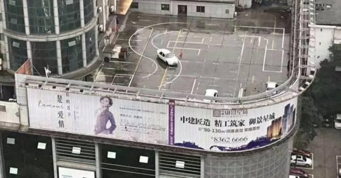 Trên sân thượng của một toà nhà ở Trung quốc là nơi dành cho những người học lái xe.Sau khi những hình ảnh về trường học lái xe này được lan truyền rộng rãi trên cộng đồng mạng.Sân tập lái nguy hiểm này đã phải đóng cửa.