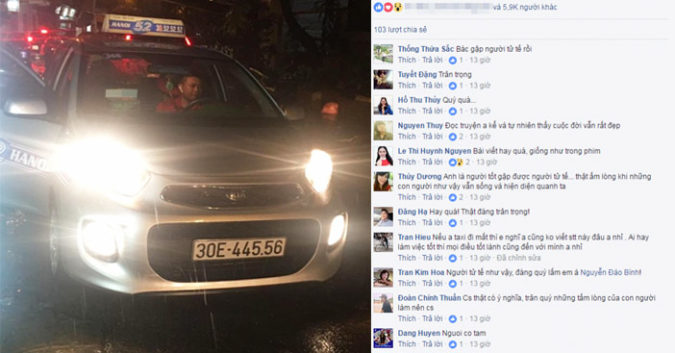 Câu chuyện được chia sẻ rộng rãi trên mạng xã hội, kể về một người tài xế taxi vì không có tiền thối trả lại cho khách, mặc dù nhận tờ 500 nghìn nhưng vẫn kiên nhẫn chờ gần 1 tiếng hồ để khách đi lấy tiền lẻ trả.