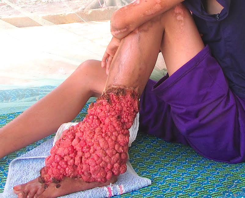Nhưng vì bệnh đã biến chứng và lây lan vào máu nên phạm vi phát bệnh càng lan rộng. Đến nay, nó ăn xuống bàn chân không thể đi lại được nữa. Mọi sinh hoạt của Thanh giờ đều phải nhờ cậy mẹ, kể cả việc vệ sinh cá nhân.