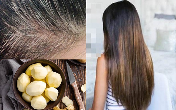 Khoai tây cũng rất tốt cho tóc, giúp loại bỏ hiện tượng tóc bạc một cách tự nhiên. Bạn hãy đun sôi vỏ khoai tây trong nước khoảng 30 phút và để nguội. Sử dụng nước sau khi dùng dầu gội. Như vậy mái tóc bạn sẽ dần chuyển thẫm hơn mà không cần hóa chất mạnh nào!