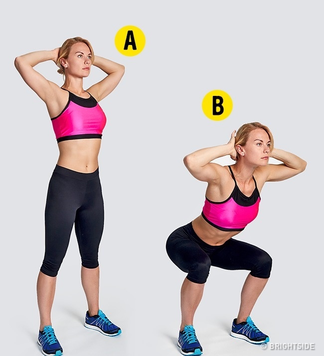 - Hạ thấp trọng tâm cơ thể, chân chùng xuống, cố gắng hạ càng thấp càng tốt, lưng vẫn giữ thẳng.