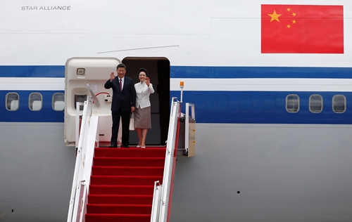 Chủ tịch Trung Quốc và phu nhân tại sân bay Quốc tế Hong Kong. Ảnh: Reuters .