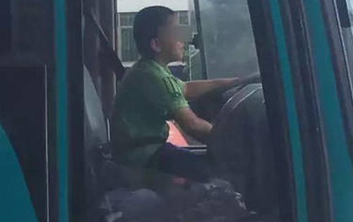 Vào ngày 20/6 vừa qua, không ít người đi đường đã chụp được một cảnh tượng khiến họ thực sự "rụng rời": Một bé trai chừng 8-9 tuổi một mình ngồi trên ghế tài xế xe buýt, một tay cầm vô lăng, một tay cầm phanh, điều khiển cho xe chạy phăng phăng trên đường.