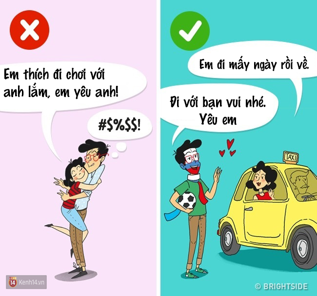 Là người yêu, là vợ chồng chứ không phải là bố mẹ của nhau thế nên hãy bớt quan tâm những điều nhỏ xíu lại. Ai cũng là người trưởng thành, đủ khôn lớn để biết nên làm cái gì, làm như thế nào. Quan tâm thái quá chỉ khiến mối quan hệ trở nên ngột ngạt hơn mà thôi.