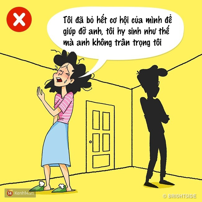 Khi bạn không có chỗ đứng trong xã hội, khi bạn không có thu nhập riêng, khi bạn phải phụ thuộc tất cả vào đối phương thì sự hy sinh của bạn chẳng có nghĩa lý gì hết, việc bạn bị xem thường cũng là điều dễ hiểu và bạn không thể oán trách bất kỳ ai. Hy sinh tất cả là một sai lầm, nó không khiến bạn hạnh phúc hơn, nó chỉ khiến bạn bất hạnh thôi. Muốn được tôn trọng thì phải độc lập và dừng ngay cái suy nghĩ phải hy sinh cho người khác đi.
