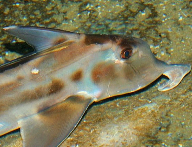 Còn được gọi là cá mập voi, loài cá này sử dụng chiếc mũi mềm, dài của mình sục vào trong cát, lùa những sinh vật nhỏ bé dưới đáy biển ra khỏi chỗ trú ẩn để tìm nguồn thức ăn.