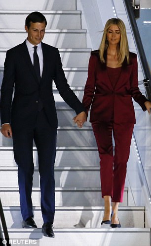 Ivanka cùng chồng tay trong tay đặt chân xuống Ba Lan hôm 5-7. Ảnh: Reuters