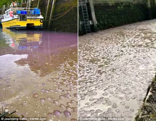 Hàng chục ngàn con sứa nằm la liệt trên mặt nước.