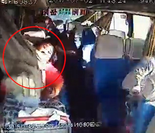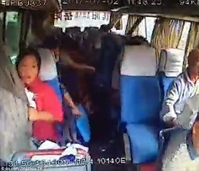 Trong khi mọi người đều bị văng khỏi ghế, người phụ nữ vẫn ôm chặt con không buông.